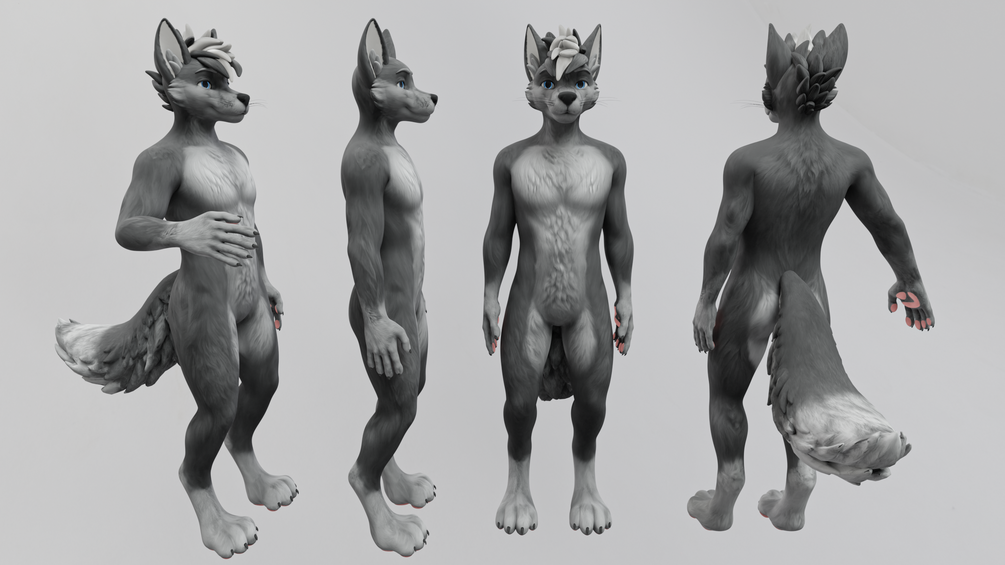 Package contains PBR-textures for body material, floofier tail version and mohawk.